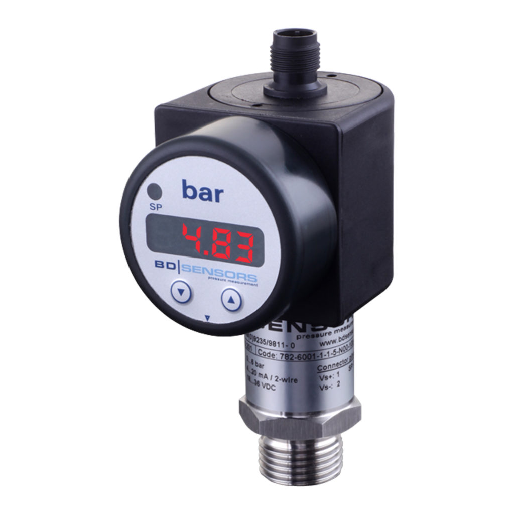 Med display: Tack vare enkelt handhavande och de olika funktionsmöjligheterna (fritt programmerbara switchlägen, fördröjningsfunktion, lagring av min/max värden, skalbar display och analog utsignal etc) är DS 200 / DS 400 serien speciellt lämplig som en intelligent tryckswitch för maskinapplikationer och processindustri. Mätområden 0…6 mbar till 0…2200 bar med upp till 4 kontakter.