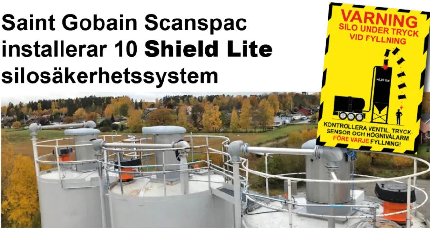 Saint Gobain Scanspac har insett säkerhetsproblemet vid leveranser till sina silor, och under våren 2019 beslöt de sig att testa PAABs silosäkerhetssystem SHEILD LITE. Testet föll väl ut och nyligen installerade och idriftsatte PAAB nyligen ytterligare nio silosäkerhetssystem vi fabriken i Glanshammar.